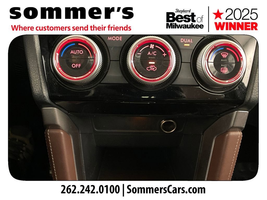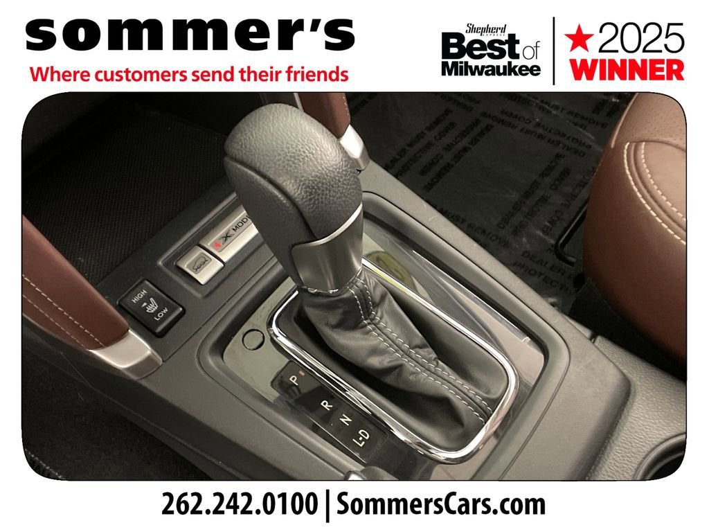 AWD | 2.5L H-4 | CVT | 26/32 mpg | Panoramic moonroof | Leather seats | Heated front seats & heated steering wheel | Power driver seat w/ lumbar | Power liftgate | Keyless start | Back-up camera | Blind Spot Monitor | Rear Cross-Traffic Alert | LED headlights w/ auto-leveling | Fog lamps | Premium audio | Bluetooth® & Smart Device Integration | Crystal Black Silica w/Saddle Brown interior | Alloy wheels
