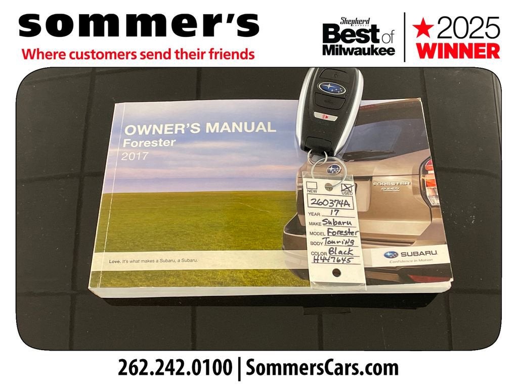 Find this 2017 Subaru Forester 2.5i Touring at Sommer's Automotive in Mequon, just north of Milwaukee serving Wisconsin drivers from Cedarburg, Grafton, Port Washington, Shorewood, Whitefish Bay, Fox Point, Bayside, Glendale, Wauwatosa, Brookfield, West Bend, Menomonee Falls, Germantown, Sussex, Hartford, Oconomowoc, Pewaukee, New Berlin, Franklin, Oak Creek, Racine, Kenosha, Muskego, Mukwonago, Hales Corners, Cudahy, South Milwaukee, and many more communities throughout the greater Milwaukee, Ozaukee County, Washington County, Waukesha County, and southeastern Wisconsin area.