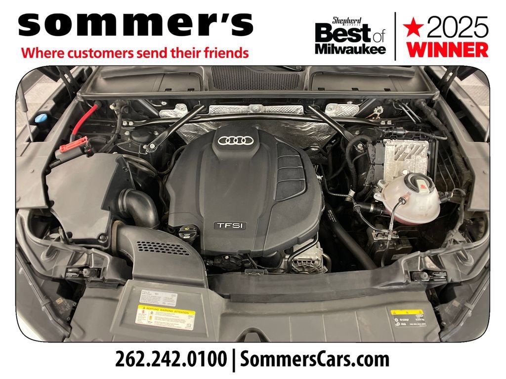 Recent Arrival! CARFAX One-Owner. Clean CARFAX.Gray Metallic 2018 Audi Q5 2.0T Premium Plus quattro23/27 City/Highway MPG23/27 City/Highway MPG2.0T Premium Plusquattroquattro 7-Speed Automatic S tronic 2.0L TFSIBlack Leather.Awards:* 2018 KBB.com Best Auto Tech Awards * 2018 KBB.com 10 Most Awarded Cars * 2018 KBB.com Best Buy Awards * 2018 KBB.com 10 Favorite New-for-2018 Cars * 2018 KBB.com 10 Most Awarded BrandsAt Sommer’s Automotive in Mequon, we’re proud to help drivers from across Milwaukee, Mequon, Waukesha, Brookfield, Whitefish Bay, Thiensville, Shorewood, Cedarburg, Grafton, Menomonee Falls, Sheboygan, West Bend, Fond du Lac, Madison, Kenosha, Racine, West Allis, Glendale, Greendale, Greenfield, Cudahy, Franklin, Oak Creek, Brown Deer, and beyond find the perfect vehicle. Our team is here to make your car-buying experience smooth, transparent, and enjoyable.
