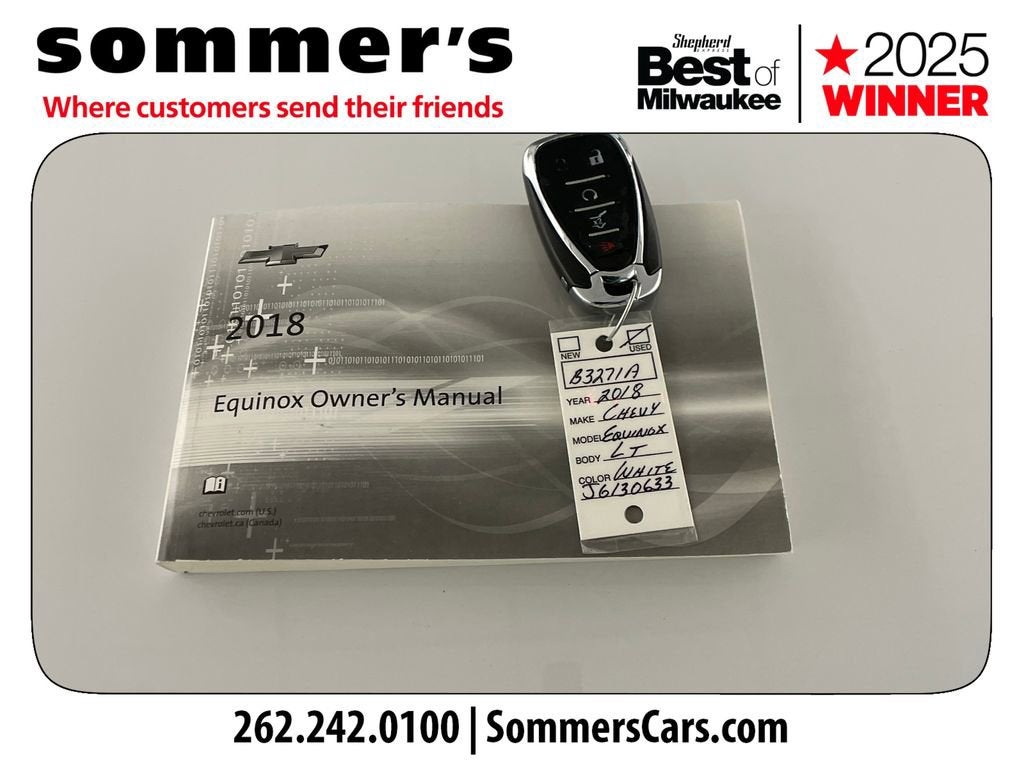 Find this 2018 Chevrolet Equinox LT at Sommer's Automotive in Mequon, just north of Milwaukee serving Wisconsin drivers from Cedarburg, Grafton, Port Washington, Shorewood, Whitefish Bay, Fox Point, Bayside, Glendale, Wauwatosa, Brookfield, West Bend, Menomonee Falls, Germantown, Sussex, Hartford, Oconomowoc, Pewaukee, New Berlin, Franklin, Oak Creek, Racine, Kenosha, Muskego, Mukwonago, Hales Corners, Cudahy, South Milwaukee, and many more communities throughout the greater Milwaukee, Ozaukee County, Washington County, Waukesha County, and southeastern Wisconsin area.