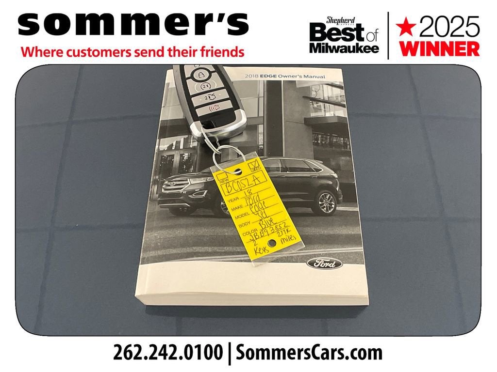 2018 Ford Edge SEL Blue Metallic AWD 6-Speed Automatic EcoBoost 2.0L I4 GTDi DOHC Turbocharged VCT 20/27 City/Highway MPG 20/27 City/Highway MPG