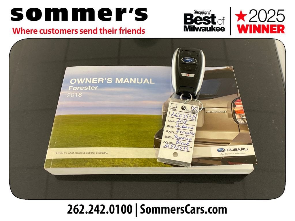 Find this 2018 Subaru Forester 2.5i Touring at Sommer's Automotive in Mequon, just north of Milwaukee serving Wisconsin drivers from Cedarburg, Grafton, Port Washington, Shorewood, Whitefish Bay, Fox Point, Bayside, Glendale, Wauwatosa, Brookfield, West Bend, Menomonee Falls, Germantown, Sussex, Hartford, Oconomowoc, Pewaukee, New Berlin, Franklin, Oak Creek, Racine, Kenosha, Muskego, Mukwonago, Hales Corners, Cudahy, South Milwaukee, and many more communities throughout the greater Milwaukee, Ozaukee County, Washington County, Waukesha County, and southeastern Wisconsin area.