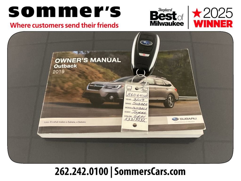 Find this 2019 Subaru Outback 2.5i Limited at Sommer's Automotive in Mequon, just north of Milwaukee serving Wisconsin drivers in Cedarburg, Grafton, Port Washington, Shorewood, Whitefish Bay, Fox Point, Bayside, Glendale, Wauwatosa, Brookfield, West Bend, Menomonee Falls, Germantown, Sussex, Hartford, Oconomowoc, Pewaukee, New Berlin, Franklin, Oak Creek, Racine, Kenosha, Muskego, Mukwonago, Hales Corners, Cudahy, South Milwaukee, and many more communities throughout the greater Milwaukee, Ozaukee County, Washington County, Waukesha County, and southeastern Wisconsin area.