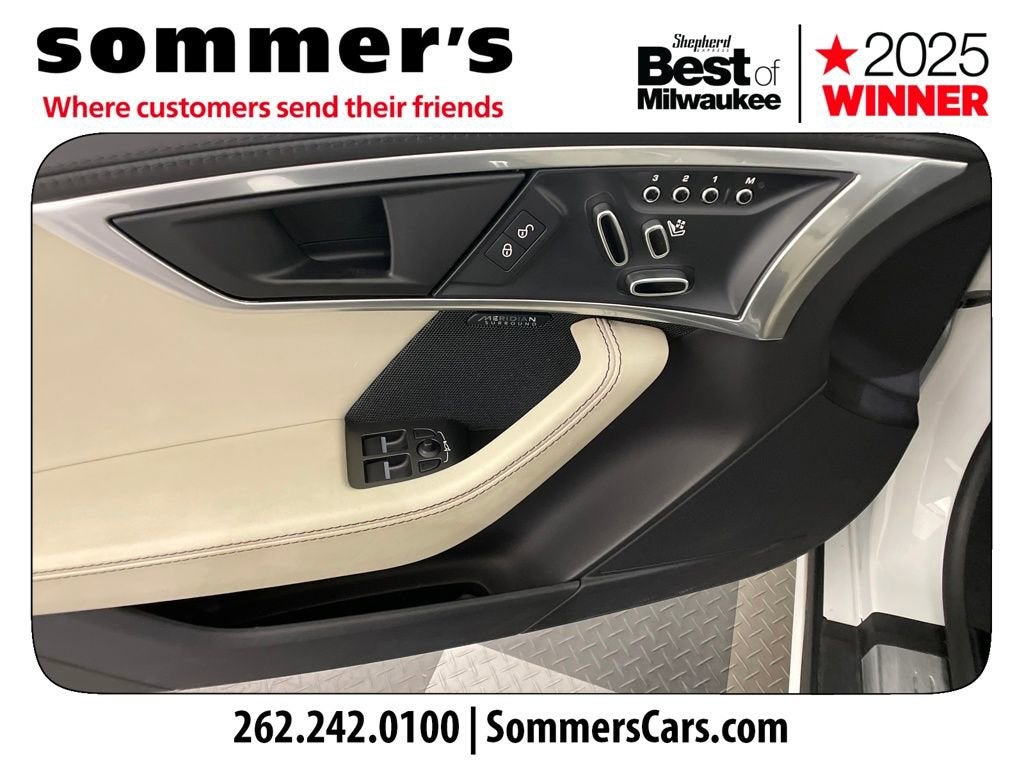 Meridian 380W audio with 10 speakers fills the cabin with detail. Apple CarPlay and Android Auto integrate maps, calls, and streaming with familiar ease.