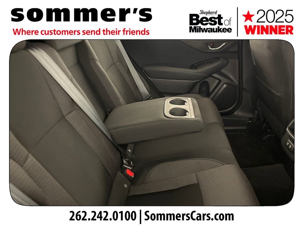 The 2.5L H4 with CVT delivers smooth, efficient power rated at 26/33 MPG. Subaru Symmetrical AWD and brake-actuated limited slip add confident traction for rain and snow.