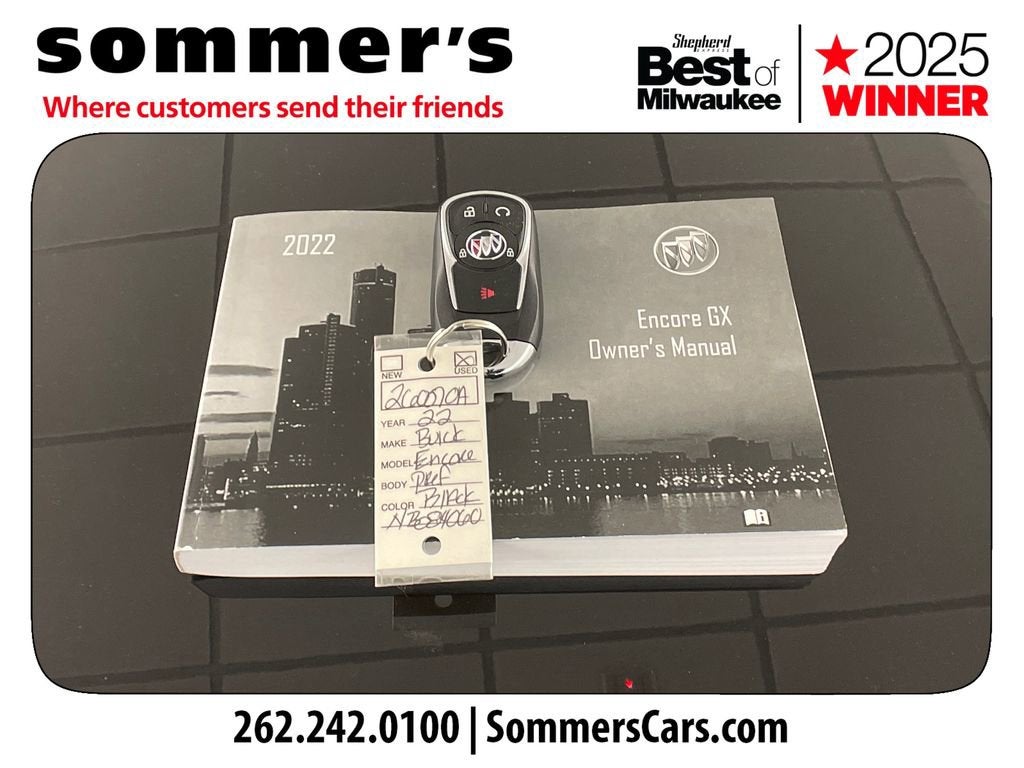 Find this 2022 Buick Encore GX Preferred 1SB at Sommer's Automotive in Mequon, just north of Milwaukee serving Wisconsin drivers from Cedarburg, Grafton, Port Washington, Shorewood, Whitefish Bay, Fox Point, Bayside, Glendale, Wauwatosa, Brookfield, West Bend, Menomonee Falls, Germantown, Sussex, Hartford, Oconomowoc, Pewaukee, New Berlin, Franklin, Oak Creek, Racine, Kenosha, Muskego, Mukwonago, Hales Corners, Cudahy, South Milwaukee, and many more communities throughout the greater Milwaukee, Ozaukee County, Washington County, Waukesha County, and southeastern Wisconsin area.