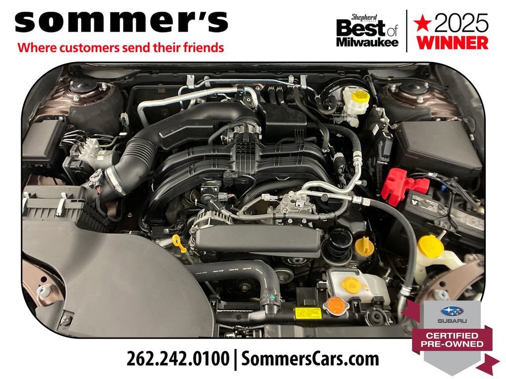 The 2.5L SUBARU BOXER engine pairs with a CVT and Symmetrical AWD for smooth, efficient power and confident traction in changing Wisconsin conditions. Four-wheel disc brakes with ABS and Brake Assist enhance control.