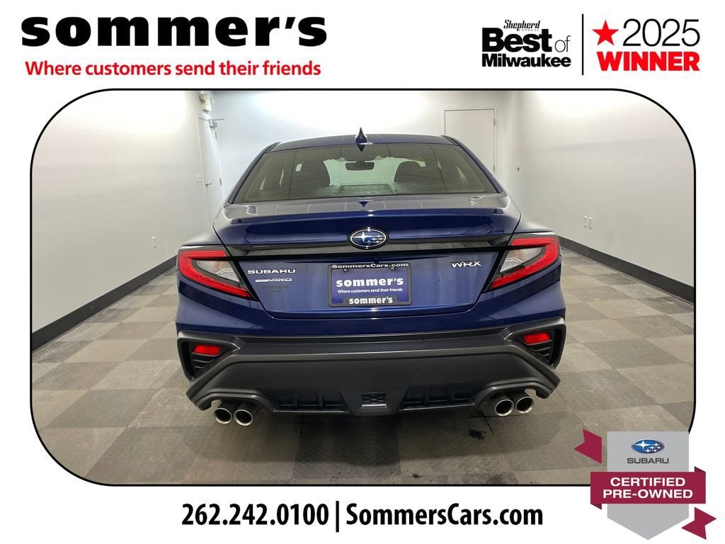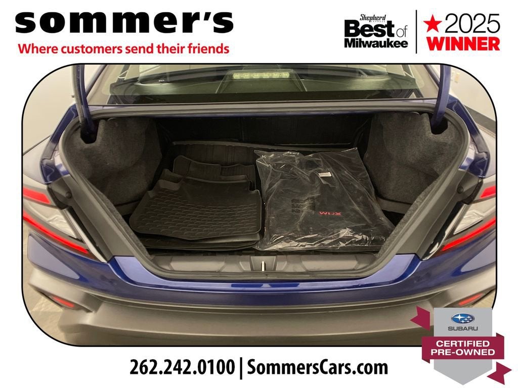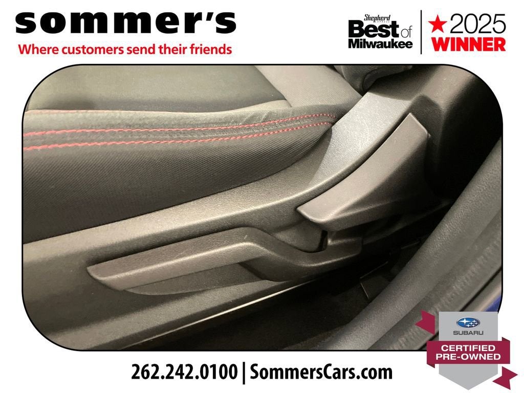 Find this 2022 Subaru WRX at Sommer's Automotive in Mequon, just north of Milwaukee serving Wisconsin drivers from Cedarburg, Grafton, Port Washington, Shorewood, Whitefish Bay, Fox Point, Bayside, Glendale, Wauwatosa, Brookfield, West Bend, Menomonee Falls, Germantown, Sussex, Hartford, Oconomowoc, Pewaukee, New Berlin, Franklin, Oak Creek, Racine, Kenosha, Muskego, Mukwonago, Hales Corners, Cudahy, South Milwaukee, and many more communities throughout the greater Milwaukee, Ozaukee County, Washington County, Waukesha County, and southeastern Wisconsin area.