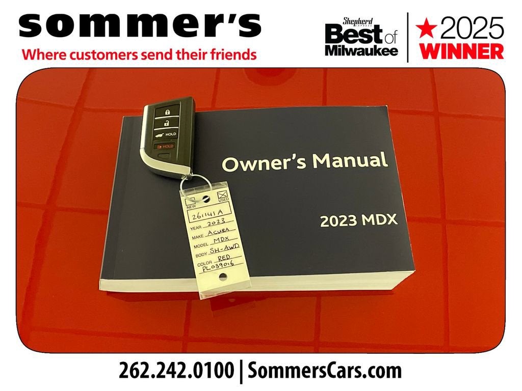 Find this 2023 Acura MDX Technology SH-AWD at Sommer's Automotive in Mequon, just north of Milwaukee serving Wisconsin drivers from Cedarburg, Grafton, Port Washington, Shorewood, Whitefish Bay, Fox Point, Bayside, Glendale, Wauwatosa, Brookfield, West Bend, Menomonee Falls, Germantown, Sussex, Hartford, Oconomowoc, Pewaukee, New Berlin, Franklin, Oak Creek, Racine, Kenosha, Muskego, Mukwonago, Hales Corners, Cudahy, South Milwaukee, and many more communities throughout the greater Milwaukee, Ozaukee County, Washington County, Waukesha County, and southeastern Wisconsin area.Recent Arrival! CARFAX One-Owner. Clean CARFAX.