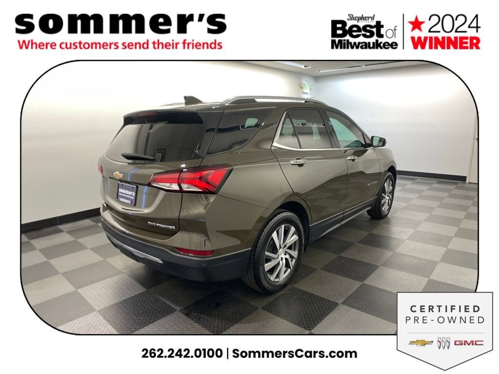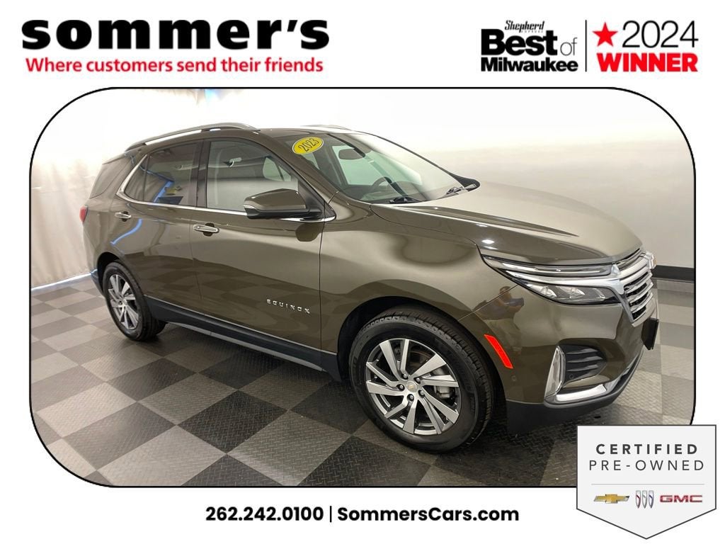 Find this 2023 Chevrolet Equinox Premier 1LZ at Sommer's Automotive in Mequon, just north of Milwaukee serving Wisconsin drivers in Cedarburg, Grafton, Port Washington, Shorewood, Whitefish Bay, Fox Point, Bayside, Glendale, Wauwatosa, Brookfield, West Bend, Menomonee Falls, Germantown, Sussex, Hartford, Oconomowoc, Pewaukee, New Berlin, Franklin, Oak Creek, Racine, Kenosha, Muskego, Mukwonago, Hales Corners, Cudahy, South Milwaukee, and many more communities throughout the greater Milwaukee, Ozaukee County, Washington County, Waukesha County, and southeastern Wisconsin area.