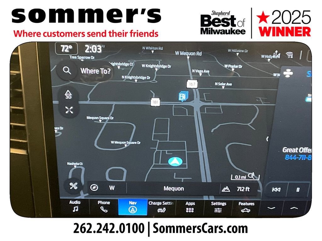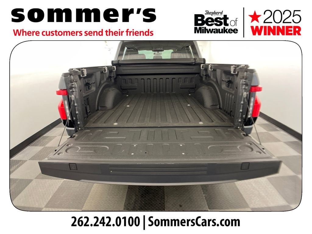 2023 Ford F-150 Lightning XLT, One Owner - 4x4 dual-motor electric, 240-mi EPA range, 76/61 MPGe, 12 SYNC 4, 360-degree camera.4x4 dual-motor EV | Single-speed transmission | 76/61 MPGe (68 combined) | EPA est. 240-mi range | 11.9-hr 240V charge time | 12 SYNC 4 w/Enhanced Voice Recognition | 360-degree camera | BLIS cross-traffic alert | Lane Keeping System | Pre-Collision Assist w/AEB | Reverse sensing & rearview camera | Heated front seats | Power driver seat | SecuriCode keyless entry | FordPass Connect w/Wi-Fi hotspot | LED headlamps & DRL | Front trunk w/power open/close | 18 machined black wheels | Carbonized Gray Metallic, Dark Slate clothPerformanceInstant electric torque from the dual-motor setup and standard 4x4 delivers confident traction and smooth, quiet acceleration.Single-speed transmission and AdvanceTrac stability control keep power delivery seamless on daily drives and weekend hauls.Comfort & ConvenienceHeated front seats and a power driver seat take the edge off cold mornings, while the roomy SuperCrew cab makes space for crew and family.SecuriCode keypad, keyless entry, tilt/telescoping wheel, and power up/down front hood for the Mega Power Frunk add everyday ease.TechnologySYNC 4 with a 12 touchscreen, enhanced voice recognition, and FordPass Connect keep apps and over-the-air updates close at hand.A 360-degree camera, reverse sensing, and a rearview camera help with tight lots and trailer hookups.SafetyFord Co-Pilot360 features include BLIS with cross-traffic alert, Lane Keeping System, and Pre-Collision Assist with Automatic Emergency Braking.Airbags, LED CHMSL, SOS Post-Crash Alert, perimeter alarm, and trailer sway control add confidence.Exterior & InteriorCarbonized Gray Metallic paint, LED headlamps/DRL, 18 machined black wheels, and bed tie-downs project ready-to-work style.Inside, Dark Slate cloth, large productivity screen, rear privacy glass, and smart storage balance comfort with durability.Driving ExperienceEffortless, quiet thrust with confident 4x4 traction and composed ride.History SummaryOne Owner. Clean History Report (no accidents or damage reported). No Open Recalls reported. Warranty Active (time/mileage remaining as noted).1FTVW1EL7PWG23121Find this 2023 Ford F-150 Lightning XLT at Sommer's Automotive in Mequon, just north of Milwaukee serving Wisconsin drivers in Cedarburg, Grafton, Port Washington, Shorewood, Whitefish Bay, Fox Point, Bayside, Glendale, Wauwatosa, Brookfield, West Bend, Menomonee Falls, Germantown, Sussex, Hartford, Oconomowoc, Pewaukee, New Berlin, Franklin, Oak Creek, Racine, Kenosha, Muskego, Mukwonago, Hales Corners, Cudahy, South Milwaukee, and many more communities throughout the greater Milwaukee, Ozaukee County, Washington County, Waukesha County, and southeastern Wisconsin area.