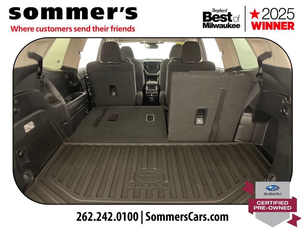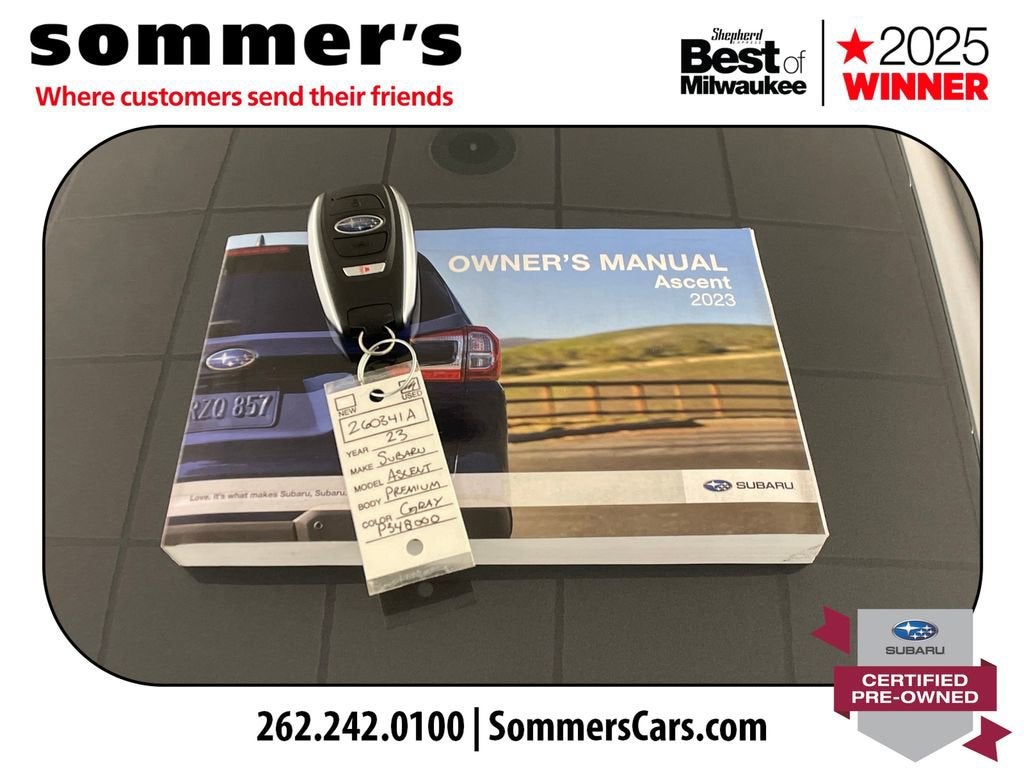 Find this 2023 Subaru Ascent Premium 7-Passenger at Sommer's Automotive in Mequon, just north of Milwaukee serving Wisconsin drivers from Cedarburg, Grafton, Port Washington, Shorewood, Whitefish Bay, Fox Point, Bayside, Glendale, Wauwatosa, Brookfield, West Bend, Menomonee Falls, Germantown, Sussex, Hartford, Oconomowoc, Pewaukee, New Berlin, Franklin, Oak Creek, Racine, Kenosha, Muskego, Mukwonago, Hales Corners, Cudahy, South Milwaukee, and many more communities throughout the greater Milwaukee, Ozaukee County, Washington County, Waukesha County, and southeastern Wisconsin area.