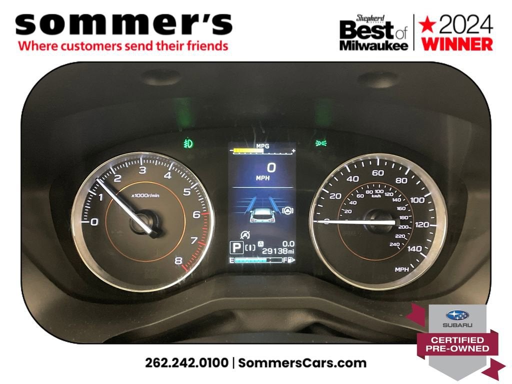 2023 Subaru Crosstrek Limited AWD - Certified Pre-Owned, One Owner - 2.5L, CVT, power moonroof, EyeSight driver assists, Apple CarPlay/Android Auto, 27/34 MPG.AWD | 2.5L H-4 | CVT w/manual mode | 27/34 MPG | Adaptive cruise control w/ lane keep assist | Blind Spot Monitor & Rear Cross-Traffic Alert | Power moonroof | Apple CarPlay & Android Auto | Bluetooth® & WiFi hotspot | Back-up camera | Leather seats w/ heated fronts | Power driver seat | LED headlights w/auto high beam | Fog lamps | Heated mirrors w/turn signals | Aluminum wheels | Crystal White Pearl | Privacy glassCPO benefits152-point inspection | 84-month/100,000-mile powertrain limited warranty from original in-service date | $0 deductible | roadside assistance | vehicle history review | transferable warranty | SiriusXM 3-month trial | 1-year STARLINK Safety & Security trial.PerformanceThe 2.5L BOXER H-4 and CVT deliver smooth, eager power with an EPA-rated 27/34 MPG. Standard Symmetrical AWD adds all-weather traction, while 4-wheel discs and brake-based limited-slip help keep control.Comfort & ConvenienceHeated leather front seats and a 6-way power driver seat make winter commutes easy. Keyless access with push-button start, A/C climate control, cruise, pass-through rear bench, cargo shade, and two 12V outlets simplify daily life.TechnologyApple CarPlay and Android Auto integrate your maps, messages, and music; the back-up camera eases tight parking. Bluetooth®, HD and satellite radio, CD player, WiFi hotspot, trip computer, telematics, and steering-wheel audio controls keep you connected.SafetyBlind Spot Monitor and Rear Cross-Traffic Alert assist in traffic and lots, while EyeSight adds adaptive cruise with steering assist, lane departure warning and lane keep. A full airbag suite, stability/traction control, TPMS, and security system add confidence.Exterior & InteriorCrystal White Pearl paint, LED auto-leveling headlights with automatic high beams, fog lamps, and heated mirrors with turn signals project a sharp look. Aluminum wheels, privacy glass, black cladding, rear spoiler, variable-intermittent wipers, and rear defrost pair with a leather cabin trimmed with orange stitching.Driving ExperienceCompact, quiet, and surefooted, it feels confident year-round and easy to park.History SummaryOne Owner. Clean History Report. No Open Recalls. Active Warranty at time of report.VIN: JF2GTHMC5P8321845Find this 2023 Subaru Crosstrek Limited at Sommer's Automotive in Mequon, just north of Milwaukee serving Wisconsin drivers from Cedarburg, Grafton, Port Washington, Shorewood, Whitefish Bay, Fox Point, Bayside, Glendale, Wauwatosa, Brookfield, West Bend, Menomonee Falls, Germantown, Sussex, Hartford, Oconomowoc, Pewaukee, New Berlin, Franklin, Oak Creek, Racine, Kenosha, Muskego, Mukwonago, Hales Corners, Cudahy, South Milwaukee, and many more communities throughout the greater Milwaukee, Ozaukee County, Washington County, Waukesha County, and southeastern Wisconsin area.