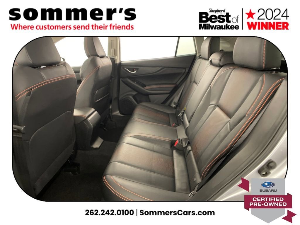 2023 Subaru Crosstrek Limited Certified Pre-Owned One Owner with AWD, 2.5L H-4, CVT, 27/34 MPG, leather, heated seats, sunroof, navigation.AWD | 2.5L H-4 | CVT | 27/34 MPG | Leather w/orange stitching | Heated front seats | Power driver seat | Sunroof | Navigation system | Premium audio | Apple CarPlay & Android Auto | Wi-Fi hotspot | Backup camera | Adaptive cruise & lane keep | Blind spot monitor | Auto-leveling LED headlights | Fog lamps | Ice Silver Metallic | Aluminum wheels | Rear spoilerCPO benefits152-point inspection | 84 mo/100,000 mi powertrain from original in-service | $0 deductible | roadside assistance | vehicle history | transferable warranty | STARLINK Safety & Security 1-yr trial | SiriusXM 3-mo trial.Performance2.5L H-4 and CVT balance smooth power with efficiency.Symmetrical AWD with limited-slip and X-Mode programming helps in rain and snow, plus Tow and Hill Assist for control.Comfort & ConvenienceLeather seating with orange stitching and heated fronts warm quickly; the power driver seat fine-tunes support.Dual-zone climate, rear pass-through bench, cargo shade, and ample small-item storage make errands and road trips easy.TechnologyNavigation with premium audio keeps directions clear and music crisp.Apple CarPlay/Android Auto, Bluetooth®, USB/Aux, HD Radio, Wi-Fi hotspot, and telematics keep you connected on the go.SafetyPre-collision braking with forward collision mitigation and driver monitoring help watch the road.Adaptive cruise with lane centering, blind spot monitor, lane departure warning/keep assist, airbags, and stability/traction add confidence.Exterior & InteriorIce Silver Metallic with auto-leveling LED headlights, fog lamps, rear spoiler, privacy glass, and aluminum wheels looks sharp day or night.Heated mirrors with signals, roofline spoiler, and black cladding add utility; inside, 3 front displays and illuminated visors boost usability.Driving ExperienceAWD grip and a quiet, composed ride make daily commutes and weekend trails relaxing.History SummaryCARFAX 1-Owner; Clean History Report (no accidents/damage reported); No Open Recalls; Basic warranty active at time of report.VIN: JF2GTHNC1P8303387Find this 2023 Subaru Crosstrek Limited at Sommer's Automotive in Mequon, just north of Milwaukee serving Wisconsin drivers in Cedarburg, Grafton, Port Washington, Shorewood, Whitefish Bay, Fox Point, Bayside, Glendale, Wauwatosa, Brookfield, West Bend, Menomonee Falls, Germantown, Sussex, Hartford, Oconomowoc, Pewaukee, New Berlin, Franklin, Oak Creek, Racine, Kenosha, Muskego, Mukwonago, Hales Corners, Cudahy, South Milwaukee, and many more communities throughout the greater Milwaukee, Ozaukee County, Washington County, Waukesha County, and southeastern Wisconsin area.