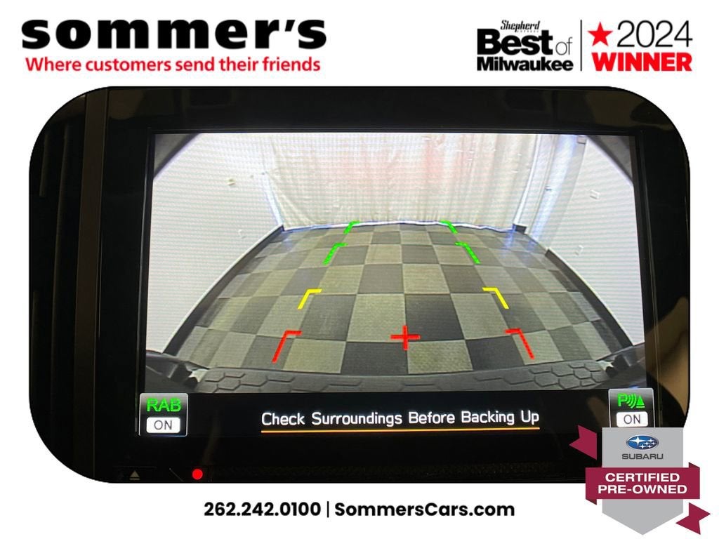 AWD | 2.5L H4 + CVT | 27/34 City/Highway MPG | Power moonroof | Navigation system | Premium audio | Apple CarPlay & Android Auto | Heated front seats | Leather seats | Power driver seat | Blind-Spot Monitor | Lane Keep Assist & Lane Departure Warning | Forward Collision Mitigation | Adaptive cruise control | Back-up camera | Wi-Fi hotspot | LED headlights w/auto high beams & fog lamps | Aluminum wheels | Crystal Black Silica exterior