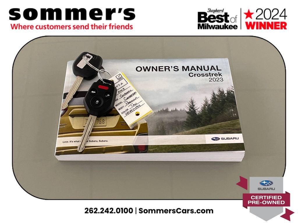 Find this 2023 Subaru Crosstrek Premium at Sommer's Automotive in Mequon, just north of Milwaukee serving Wisconsin drivers from Cedarburg, Grafton, Port Washington, Shorewood, Whitefish Bay, Fox Point, Bayside, Glendale, Wauwatosa, Brookfield, West Bend, Menomonee Falls, Germantown, Sussex, Hartford, Oconomowoc, Pewaukee, New Berlin, Franklin, Oak Creek, Racine, Kenosha, Muskego, Mukwonago, Hales Corners, Cudahy, South Milwaukeeand many more communities throughout the greater Milwaukee, Ozaukee County, Washington County, Waukesha County, and southeastern Wisconsin area.