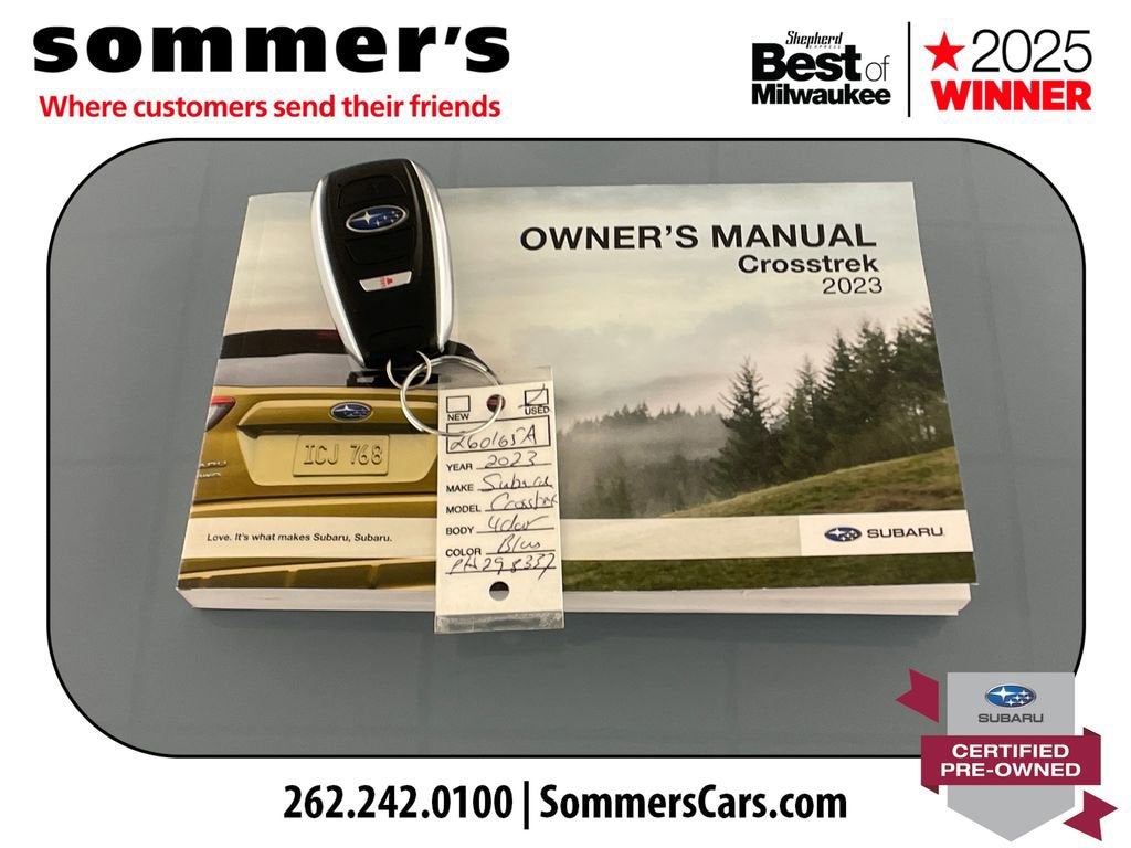 Find this 2023 Subaru Crosstrek Sport at Sommer's Automotive in Mequon, just north of Milwaukee serving Wisconsin drivers from Cedarburg, Grafton, Port Washington, Shorewood, Whitefish Bay, Fox Point, Bayside, Glendale, Wauwatosa, Brookfield, West Bend, Menomonee Falls, Germantown, Sussex, Hartford, Oconomowoc, Pewaukee, New Berlin, Franklin, Oak Creek, Racine, Kenosha, Muskego, Mukwonago, Hales Corners, Cudahy, South Milwaukee, and many more communities throughout the greater Milwaukee, Ozaukee County, Washington County, Waukesha County, and southeastern Wisconsin area.