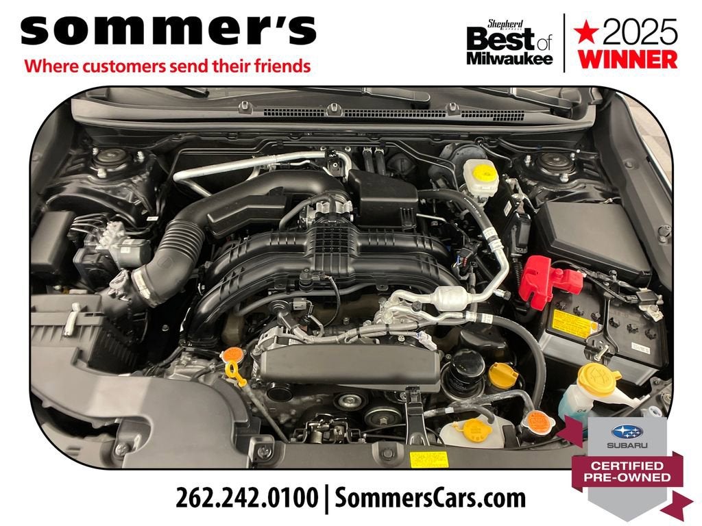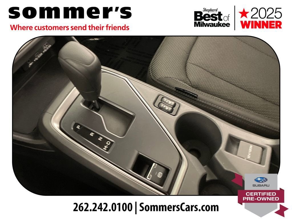 The 2.0L H-4, CVT, and full-time AWD deliver balanced efficiency and steady traction in changing Wisconsin weather. Dual shift mode, brake assist, and brake actuated limited slip differential add control.