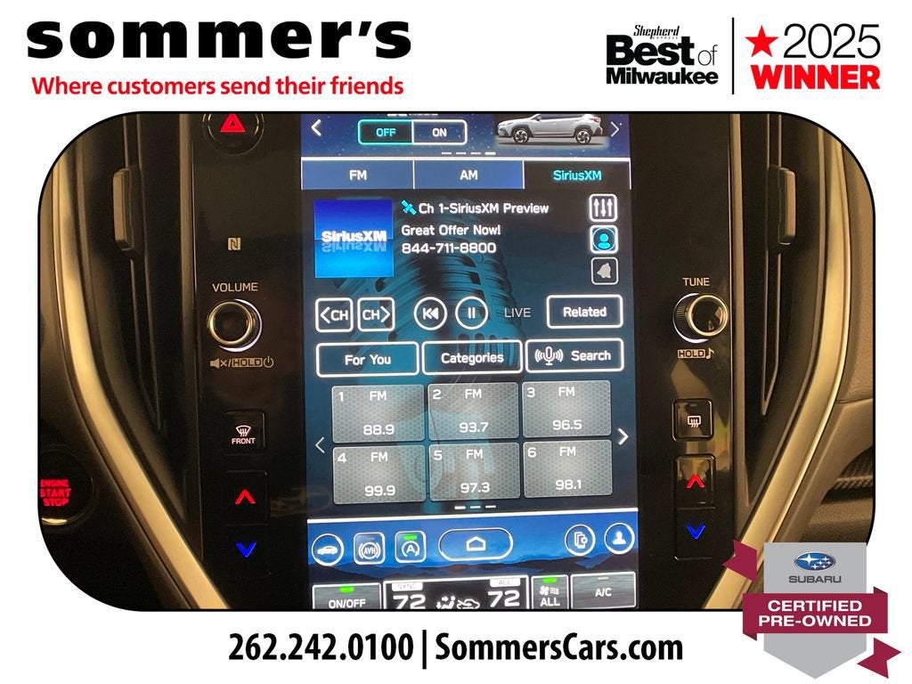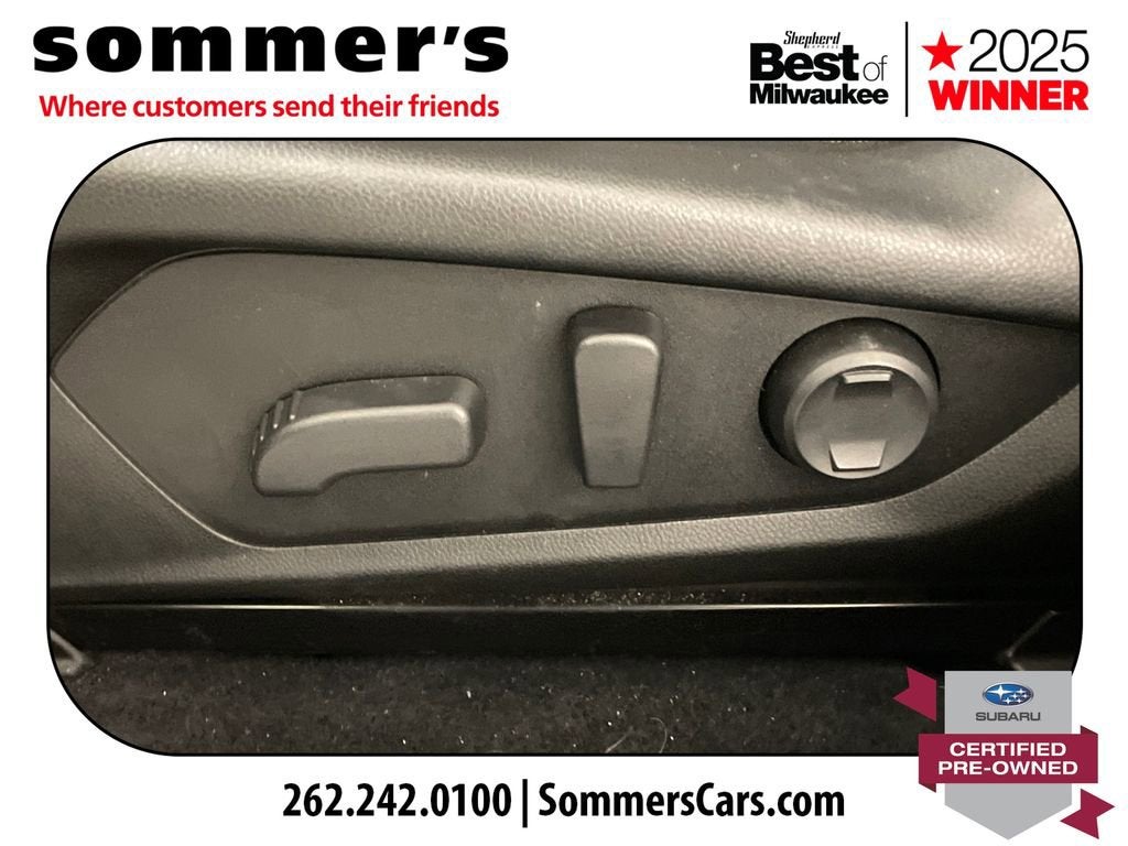 AWD | 2.0L H-4 | CVT | 27/34 MPG | Blind-Spot Detection + Rear Cross-Traffic Alert | EyeSight adaptive cruise & lane keep | Power driver seat | Heated front seats | Power moonroof | Apple CarPlay/Android Auto | Wi-Fi hotspot | LED headlights w/auto high beam | Fog lights | Crystal Black Silica | Keyless entry | Backup camera