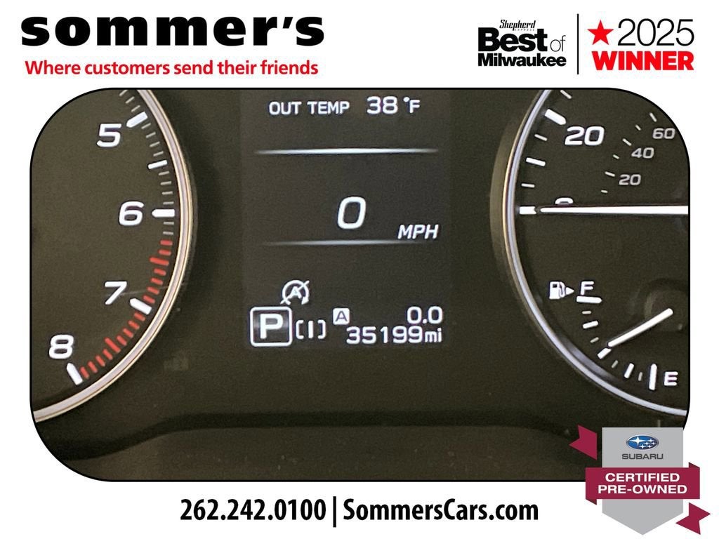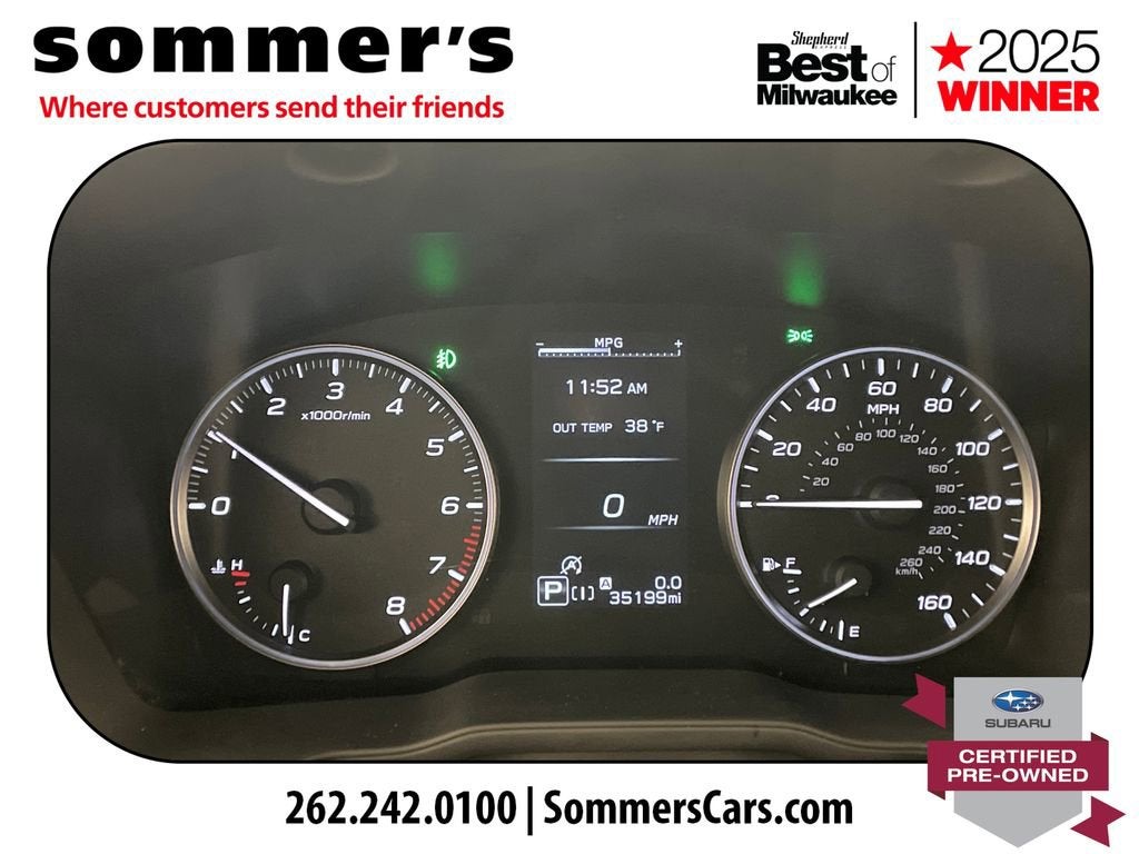 AWD | 2.0L H-4 | CVT | 27/34 City/Highway MPG | 35,184 miles | adaptive cruise control | Apple CarPlay | Android Auto | back-up camera | keyless entry | keyless start | dual-zone climate control | WiFi hotspot | auto-dimming rearview mirror | Universal Garage Door Opener | aluminum wheels | fog lamps | LED headlights