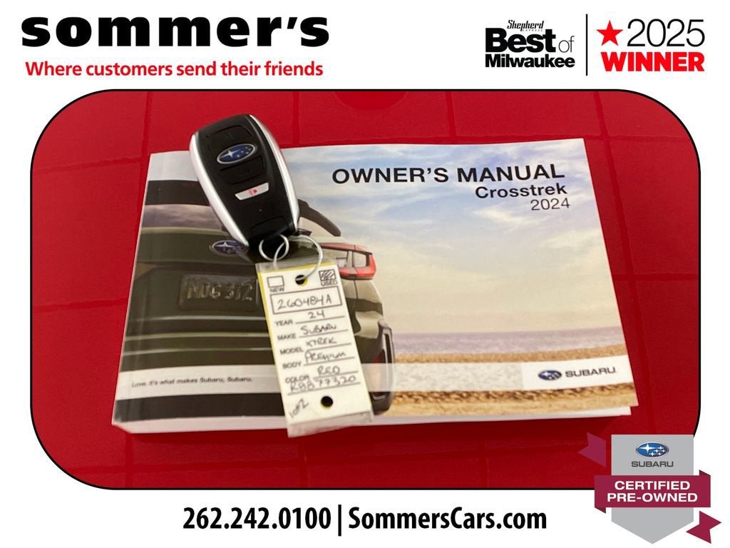 Find this 2024 Subaru Crosstrek Premium at Sommer's Automotive in Mequon, just north of Milwaukee serving Wisconsin drivers from Cedarburg, Grafton, Port Washington, Shorewood, Whitefish Bay, Fox Point, Bayside, Glendale, Wauwatosa, Brookfield, West Bend, Menomonee Falls, Germantown, Sussex, Hartford, Oconomowoc, Pewaukee, New Berlin, Franklin, Oak Creek, Racine, Kenosha, Muskego, Mukwonago, Hales Corners, Cudahy, South Milwaukee, and many more communities throughout the greater Milwaukee, Ozaukee County, Washington County, Waukesha County, and southeastern Wisconsin area.