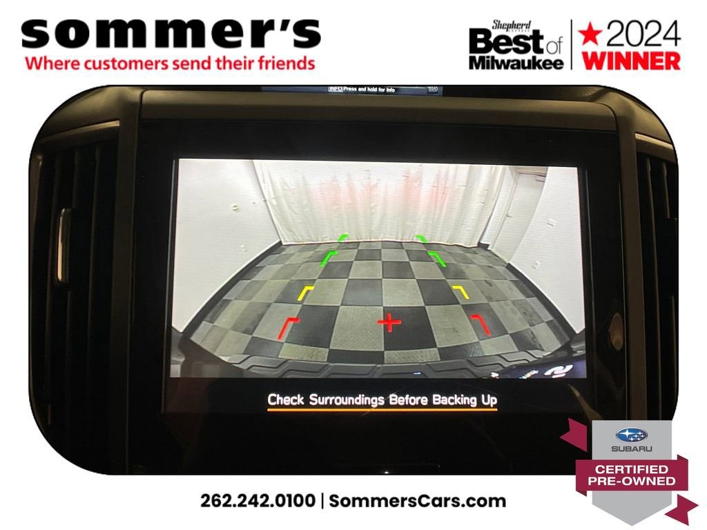 AWD | 2.5L H-4 w/CVT | EyeSight driver assist w/adaptive cruise & lane keep | Heated front seats | Panoramic roof Sun/Moonroof | Power liftgate | Apple CarPlay & Android Auto | Blind-spot monitor & Driver Monitoring | LED headlights w/auto high beams & DRL | Heated mirrors w/turn signals | Leather steering wheel | Wi-Fi hotspot & Bluetooth® | Keyless entry & push-button start | Back-up camera | Aluminum wheels | Fog lamps | Privacy glass | Crystal Black Silica exterior