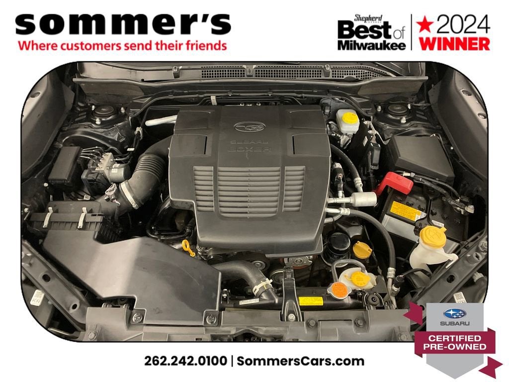 2024 Subaru Forester Limited Certified Pre-Owned, One Owner. AWD 2.5L H-4 with CVT, EyeSight, heated front seats, panoramic moonroof, power liftgate, Apple CarPlay/Android Auto, 26/33 MPG.