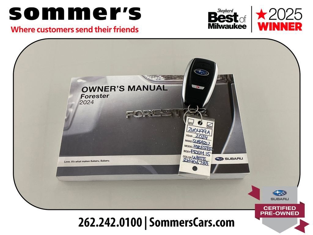 Find this 2024 Subaru Forester Premium at Sommer's Automotive in Mequon, just north of Milwaukee serving Wisconsin drivers from Cedarburg, Grafton, Port Washington, Shorewood, Whitefish Bay, Fox Point, Bayside, Glendale, Wauwatosa, Brookfield, West Bend, Menomonee Falls, Germantown, Sussex, Hartford, Oconomowoc, Pewaukee, New Berlin, Franklin, Oak Creek, Racine, Kenosha, Muskego, Mukwonago, Hales Corners, Cudahy, South Milwaukee, and many more communities throughout the greater Milwaukee, Ozaukee County, Washington County, Waukesha County, and southeastern Wisconsin area.