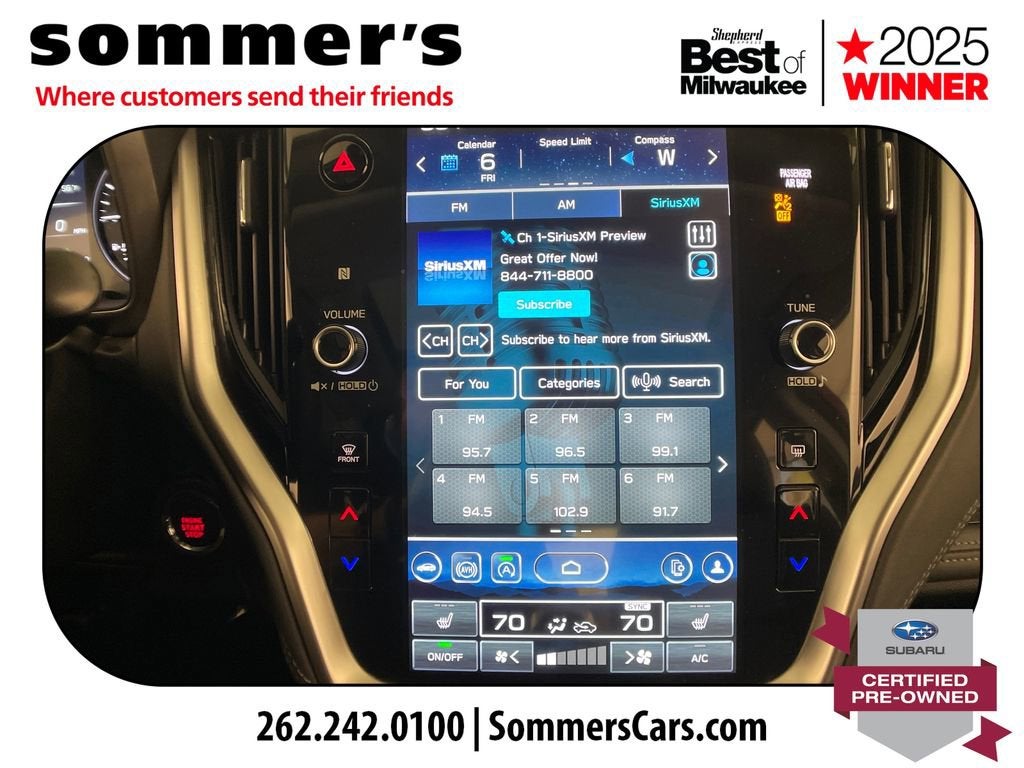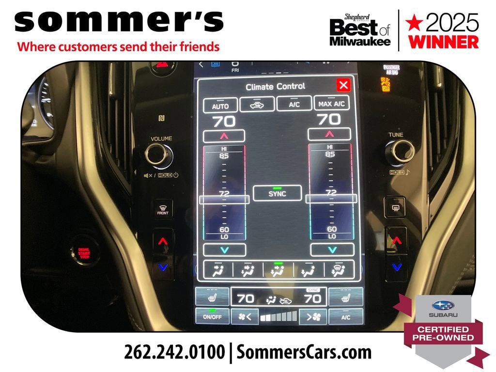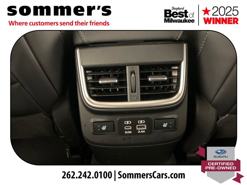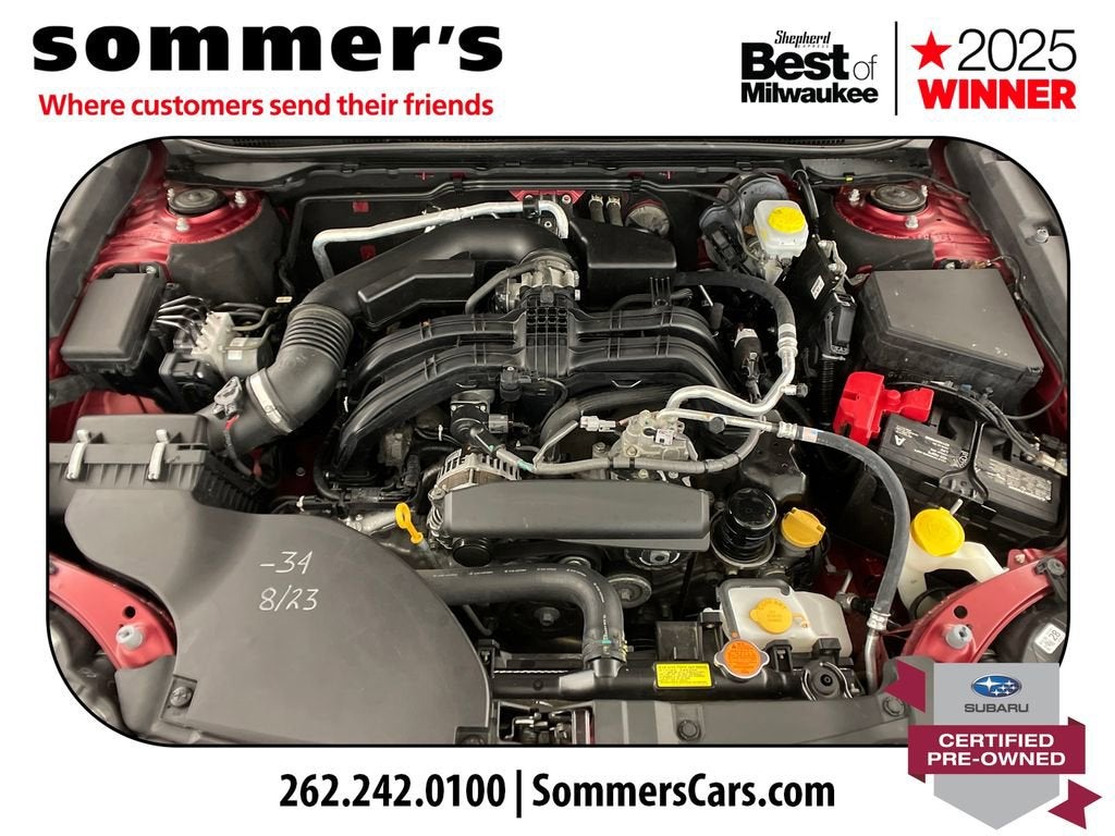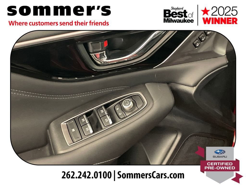 2024 Subaru Legacy Limited Certified Pre-Owned, One Owner AWD 2.5L, leather, heated seats, moonroof, navigationAWD | 2.5L SUBARU BOXER H-4 | CVT | 27/35 city/highway MPG | leather-trimmed seating | heated front seats | heated rear seats | heated steering wheel | power front seats | driver's seat memory | Apple CarPlay | Android Auto | navigation system | premium sound system | sun/moonroof | blind spot monitor | LED headlights | adaptive cruise controlCPO benefits: 152-point inspection | 84-month/100,000-mile powertrain limited warranty from original in-service date | $0 deductible | roadside assistance | vehicle history | transferable warranty | SiriusXM 3-month trial | 1-year STARLINK trialPerformanceThe 2.5L SUBARU BOXER engine and CVT deliver smooth, efficient power for daily driving. Full-time AWD adds steady control in changing road conditions.Comfort & ConvenienceLeather-trimmed seating, heated front and rear seats, and a heated steering wheel help keep the cabin comfortable. Power front seats, driver's memory, and dual-zone climate control add everyday ease.TechnologyApple CarPlay and Android Auto pair with navigation for easy access to calls, music, and maps. A premium sound system, moonroof, Bluetooth®, and telematics round out the cabin.SafetyBlind spot monitor, back-up camera, and rear traffic awareness features help in busy parking lots and traffic. Adaptive cruise control, lane keeping assist, and front collision mitigation support highway travel.Exterior & InteriorCrimson Red Pearl paint, LED headlights, fog lamps, and aluminum wheels give this Legacy a clean, upscale look. Inside, the Slate Black cabin adds a leather steering wheel, auto-dimming rearview mirror, and useful storage.Driving ExperienceComfortable, quiet, and composed, with AWD confidence and the smooth road manners Legacy drivers expect.History SummaryOne OwnerCertified Pre-OwnedClean History ReportNo Open RecallsActive Warranty4S3BWAN6XR3009648Find this 2024 Subaru Legacy Limited at Sommer's Automotive in Mequon, just north of Milwaukee serving Wisconsin drivers from Cedarburg, Grafton, Port Washington, Shorewood, Whitefish Bay, Fox Point, Bayside, Glendale, Wauwatosa, Brookfield, West Bend, Menomonee Falls, Germantown, Sussex, Hartford, Oconomowoc, Pewaukee, New Berlin, Franklin, Oak Creek, Racine, Kenosha, Muskego, Mukwonago, Hales Corners, Cudahy, South Milwaukee, and many more communities throughout the greater Milwaukee, Ozaukee County, Washington County, Waukesha County, and southeastern Wisconsin area.
