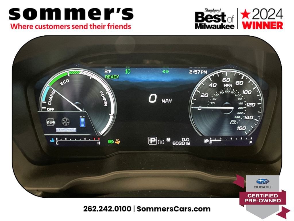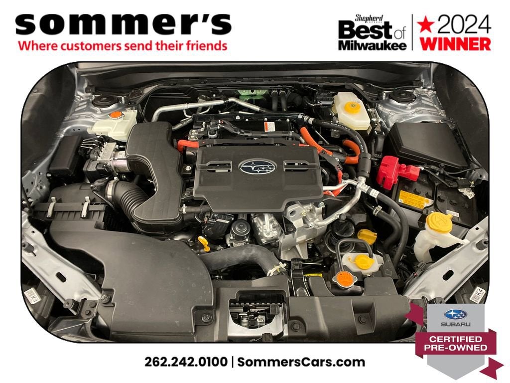 AWD | 2.5L H-4 Hybrid | CVT | 35/34 MPG | Panoramic moonroof | Heated front seats | 8-way power driver seat | Hands-free power liftgate | Keyless entry & push-button start | Dual-zone climate control | Navigation & Premium Sound | Apple CarPlay & Android Auto | Wi-Fi hotspot & telematics | Blind spot monitor | Adaptive cruise w/lane keep & Evasion Assist | LED headlights w/Auto High Beam | Heated mirrors w/turn signals | Back-up camera