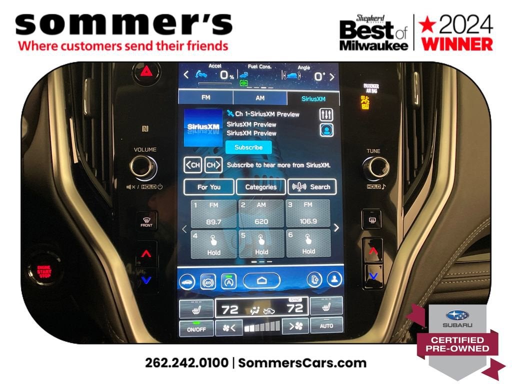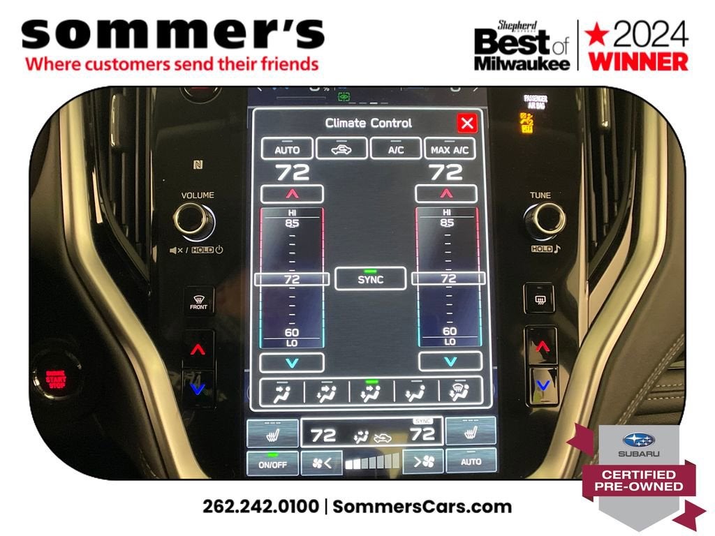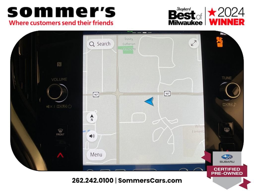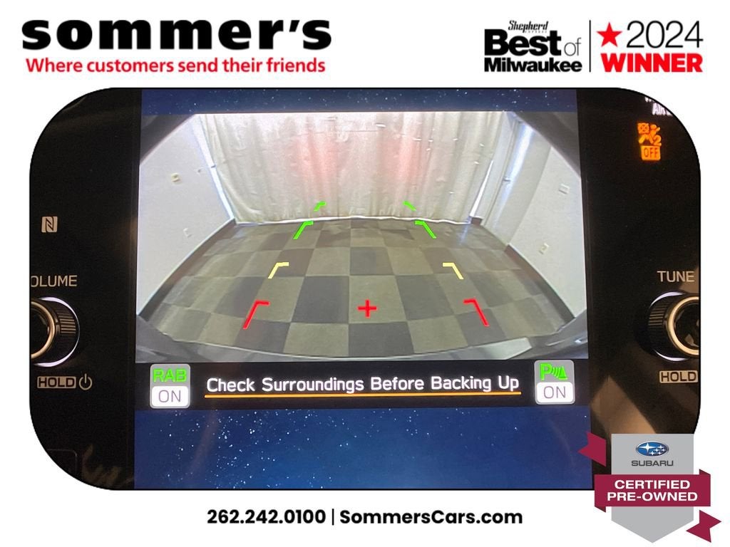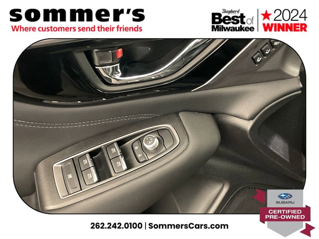 AWD | 2.5L H-4 w/ CVT | Heated front and rear seats | Heated steering wheel | Sun/Moonroof | Leather seats w/ driver memory & lumbar | Apple CarPlay & Android Auto | Built-in navigation & telematics | Premium audio | Blind-Spot Monitor & Rear Cross-Traffic Alert | Adaptive Cruise Control w/ Lane Keep Assist & Lane Departure Warning | Forward Collision Mitigation w/ Evasion Assist | LED headlights w/ auto high beams | Back-up camera | Dual-zone climate control | Universal garage door opener | Heated power mirrors w/ turn signals | Aluminum wheels & fog lamps