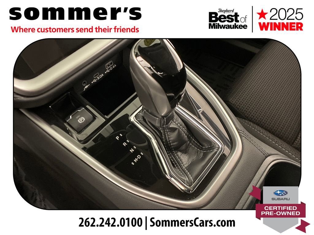 2025 Subaru Outback Premium Certified Pre-Owned AWD with 2.5L H4 and CVT, 26/32 city/hwy MPG, heated front seats, blind spot monitor, hands-free liftgate.